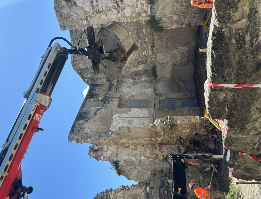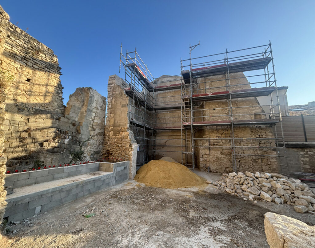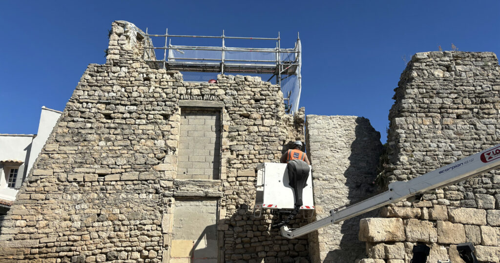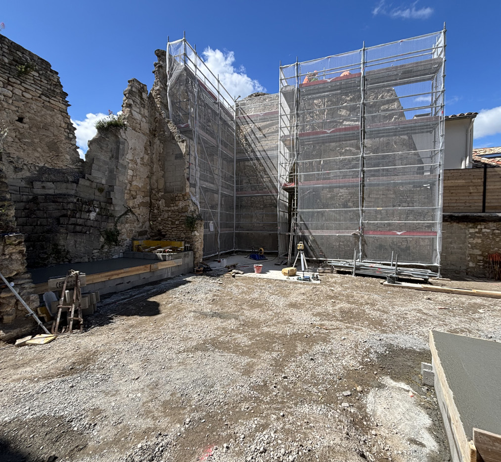 Depuis quelques semaines, les travaux d’aménagement de la nouvelle Placette des Tours ont débuté et avancent bien. Après la consolidation de la cave et la stabilisation du sol, l’opération délicate de l’écrêtage et du décroûtage des murs d’enceinte ont permis de mettre à nu des voûtes et ouvertures d’époque. Les parties fragiles seront enduites à la chaux en harmonie avec les fragments de pierres apparentes rejointoyées. Les teintes ont été définies en concertation avec l’Architecte des Bâtiments de France. La création des gradins et la pose des arases sont en cours de réalisation. La dernière phase des travaux consistera en la mise en place de la treille, l’ouverture de la placette sur la rue Haute, la réfection de la voirie et du parvis, et enfin la végétalisation du site. Les travaux seront interrompus du 1er juillet au 15 septembre. Pendant la période estivale, le chantier sera fermé et sécurisé, le passage vers la rue Haute sera rouvert et le stationnement sur le parvis autorisé.